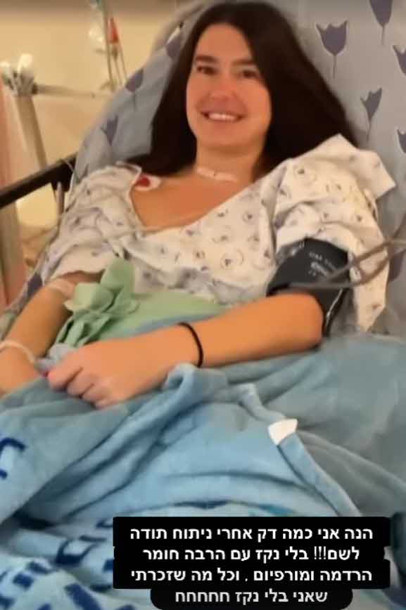 "ואז התחלתי את התהליך קבעו לי ניתוח אתמול עברתי ניתוח לכריתה של בלוטת התריס , הגוש היה לא קטן אבל כמו שאתם מכירים אותי הכל קטן עליי רוצה להגיד כי בטח יהיו מיליון שאלות לכו להיבדק נשים שחוו בעיות בבלוטת התריס בהריון לכו תעשו אולטרסאונד צוואר !! הייתה לי השגחה עליונה שמירה מלמעלה מטורפת מישהי שללה לי הודעה באינסטגרם שנראה שיש לי בליטה שאבדוק , ישר הלכתי לבדוק הבדיקות שם כולן היו תקינות רק האולטרסאונד הראה על ציסטה ומשם ביופסיה ומשם סרטן !! לי זה ניגרם מההריון של ליב !! כמה זה חשוב לכו להבדק זה יכול לקרות בכל גיל."
