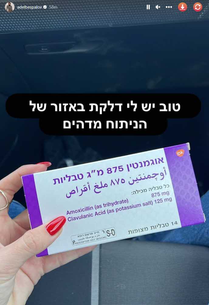 בשעה האחרונה התברר לאדל כי התפתחה אצלה דלקת באיזור של הניתוח והוחלט לספק לה אנטיביוטיקה דיי חזקה כדי להתאושש מהמצב המתגבש, היא כמובן החליטה לתעד זאת לעוקבים ולעוקבות המודאגים.