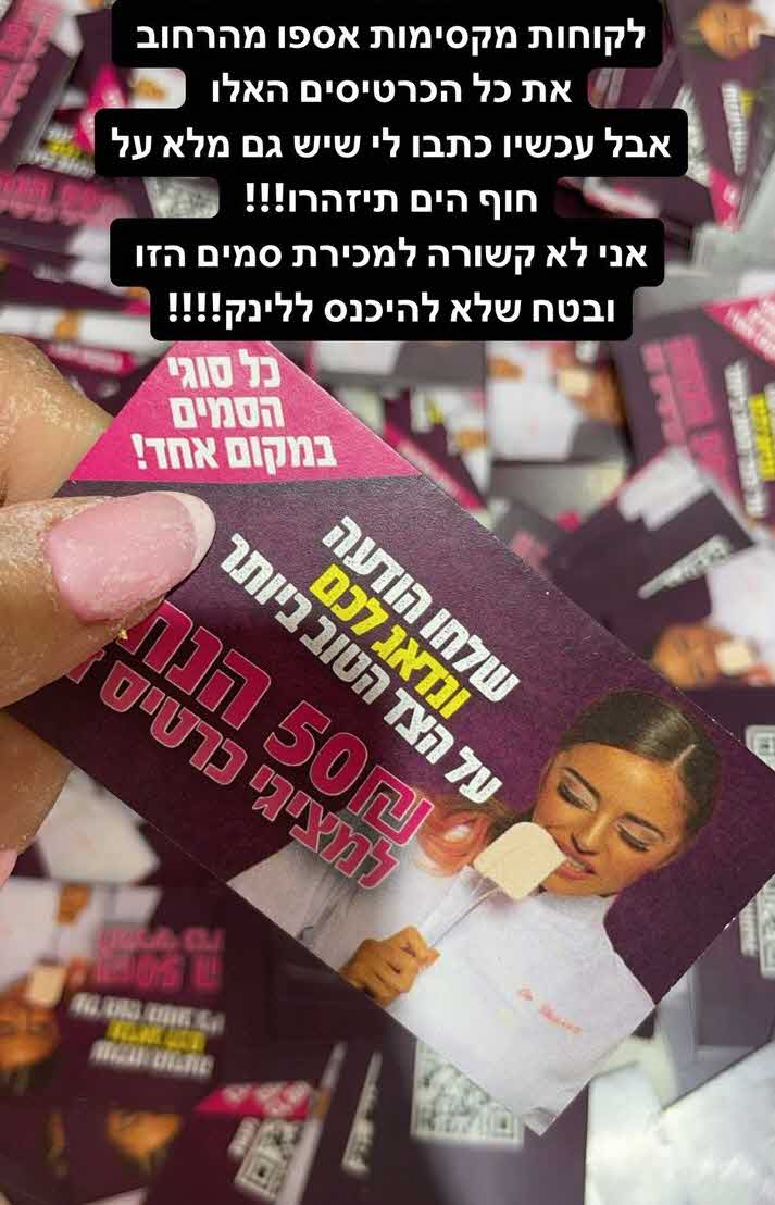 הרשת סוערת בימים האחרונים בעקבות מה שנראה כמו תופעה חדשה שרק מתרחבת ומתרחבת במימדי ענק ברשת הטלגרם וגם בפליירים ברחובות. שמם של לא מעט מפורסמים, לרבות כאלה שהשתתפו בתוכנית הריאלטי "האח הגדול" נמצא בשימוש ומיתוג ברשתות להפצת סמים מסוכנים ללא ידיעתם.
