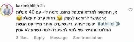 עוד הוסיף קאזם:"יפעת יקירה, רק שיעדכן אותך מייד עם הגשת התלונה ותגישי שאילתא למשטרה למה נשמע לא אמין". לתגובתו של קאזם הגיעו מיד מספר רב של תגובות קשות וביקורות לדבריו, אחת הטוקבקיסטיות השיבה לו:"אתה אחד הדוחים. עדיף לך להתאדות חצוף גועלי מסתבר שהגועל שהצגת בתכנית ממשיך למציאות. העיקר התמסכנת ובכית שנרחם עליך. אבל ,כשמישהו משתף אירוע, חוויה רעה , אתה מלכלך ומסתלבט. יגועל."