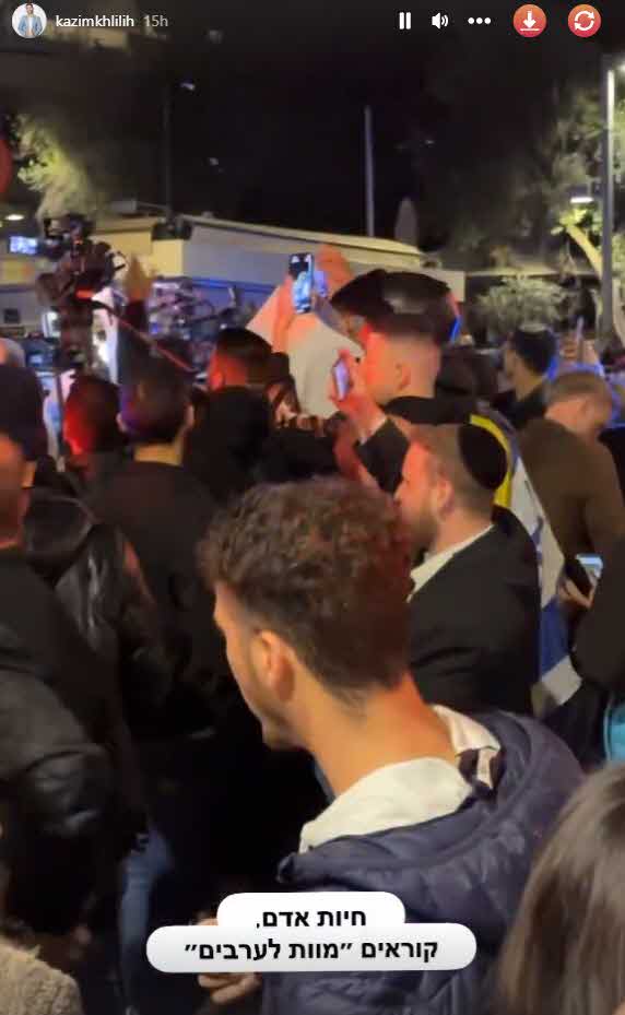 מי שהיה נוכח לקריאות האלה בין קהל המפגינים היה כוכב "האח הגדול", קאזם חליליה שלא יכל להישאר אדיש לדברים ויצא בסדרת סטוריז זועמים. תחילה שיתף קאזם על המקרה מול אותם מפגינים:"אלה שאמרו מוות לערבים, מה אתם חושבים שאני לא אדבר איתם? אז בסוף כן, לקחתי שתיים בצד. אמרתי להם חבר'ה בואו רגע. אני שמעתי אותכם אומרים 'מוות לערבים' ואני רוצה להגיד לכם שאני מתבייש בכם".