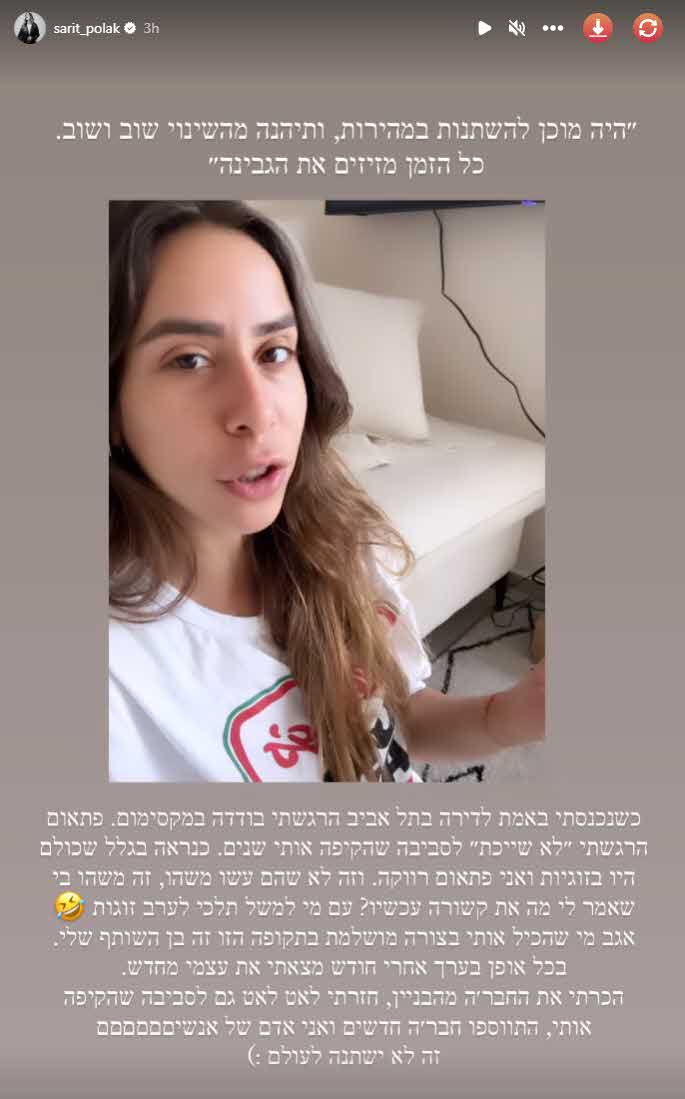 שרית חשפה על השינויים המהירים שהיא עוברת בחייה:"כשנכנסתי באמת לדירה בתל אביב הרגשתי בודדה במקסימום. פתאום הרגשתי 'לא שייכת' לסביבה שהקיפה אותי שנים. כנראה בגלל שכולם היו בזוגיות ואני פתאום רווקה. וזה לא שהם עשו משהו, זה משהו בי שאמר לי מה את קשורה עכשיו? עם מי למשל תלכי לערב זוגות?"