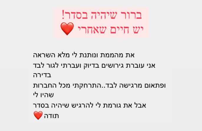 ובסרטון נוסף שיתפה על ההתמודדות עם הפחד:"שינוי זה לא בהכרח דבר רע, אנחנו צריכים להסתגל מהר לשינוי ולתפקד, להזיז את הפחד אחורה, כמה שאפשר. באמת שזה לא פשוט, פחדתי מהצל של עצמי. פשוט להמשיך לנוע ולהיות בתזוזה"