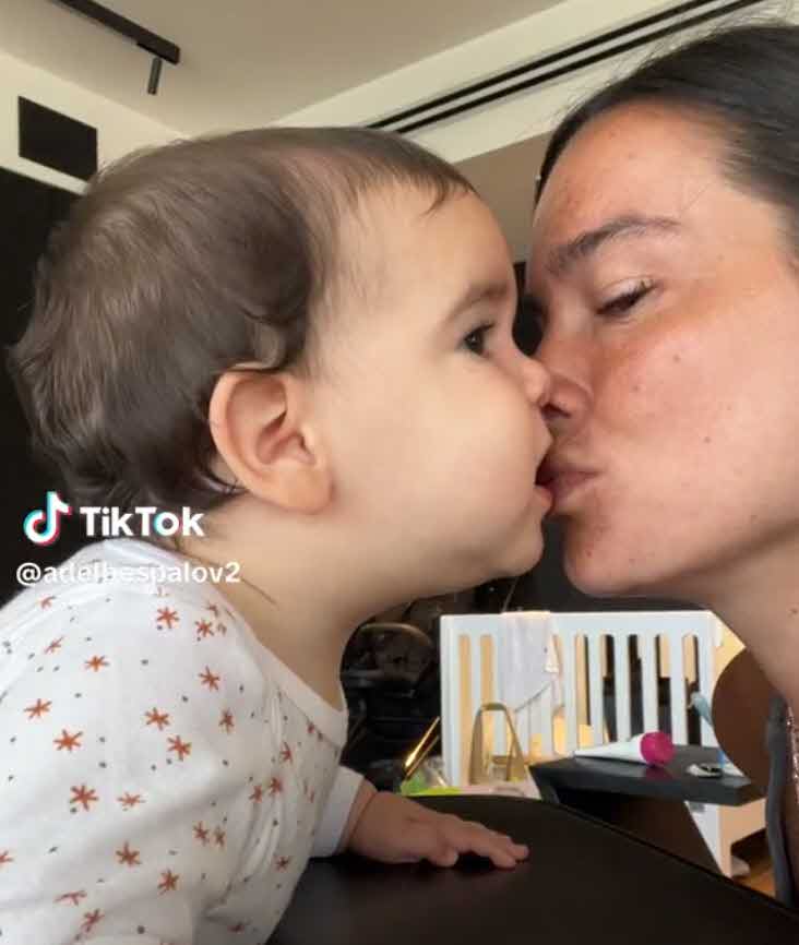 לאדל כ-138 אלף עוקבים בחשבון הטיקטוק שלה שבו היא נוהגת להעלות בעיקר סרטונים משעשעים לצד הילדים והמשפחה. באחד מהם שעלה אמש והפך לויראלי נראה בנה ליב בן ה-10 חודשים, כאשר הוא אוכל להנאתו חול מאדנית ובאותו הזמן אדל מתעדת אותו ומנסה להוריד אותו מהעניין בדיבור בלבד.