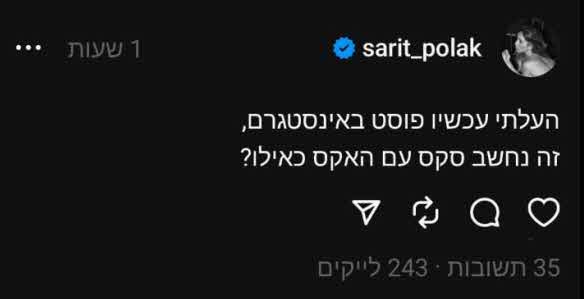 פולק זכתה לשלל תגובות משועשעות וגם לתגובה הבאה מאחד הגולשים:"בא לי למצוא לך מישהו רק בשביל שתפסיקי להשתמש בשורש אקס יא לב שלי". שרית השיבה להצעה וכתבה:"אבל אני ממש אוהבת".