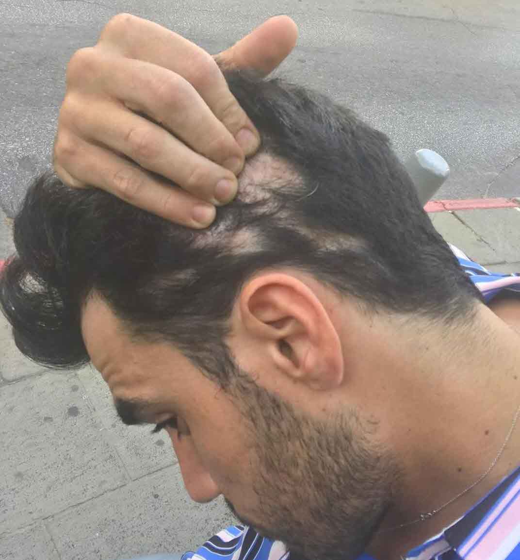 "למען האמת זו לא הפעם הראשונה שהכרתי אלופציה מהי, שכן במרוצת הזמן בחיי ראיתי המון מחבריי שסבלו בקרחות פתאומיות בזקן שטופלו באמצעות נטילת כדורים וזריקות סטרואידים לאזור ה״פגום״, אלא שבענייני הדבר היה מורכב יותר מאחר ושימוש בסטרואידים אלו החריף את תגובת הגוף שלי לפסוריאזיס, קיצר בלאגן אחד גדול. לא נותר לי אלא לתת לגוף להחלים בעצמו, תקופה נוראית בה הייתי כל בוקר מתעורר, מצמיד קלף לבן לקרקפת בכדי לזהות אם שיער חזר, מתאכזב וחוזר למיטה, עד שבוקר אחד זיהיתי שהגוף שלי מתאושש."