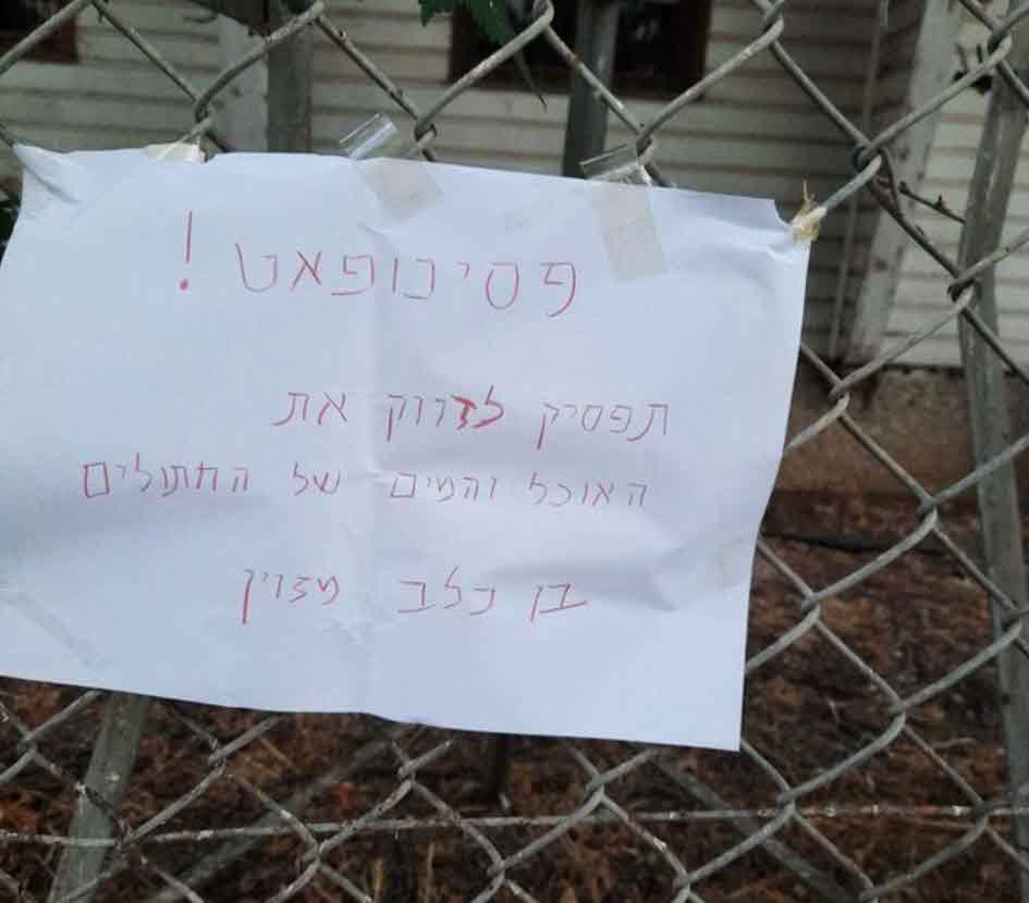 אחת הדיירות בשכנות לרון שחר בעיר תל אביב החליטה לתלות שלט על גדר מול בניין ביתו עם הכיתוב הזועם הבא:"פסיכופאט! תפסיק לזרוק את האוכל והמים של החתולים. בן כלב מזו*ן". מפי אנשים בקרבת איזור המגורים נטען כי מדובר באישה המאכילה את חתולי הרחוב באופן יום יומי. האוכל מונח על ידה בפינת הרחוב החופף לביתו של שחר. אך מכיוון שפינת האוכל עברה מקום מספר פעמים, טענה אותה אישה כי האחראי לכך הוא שחר עצמו.
