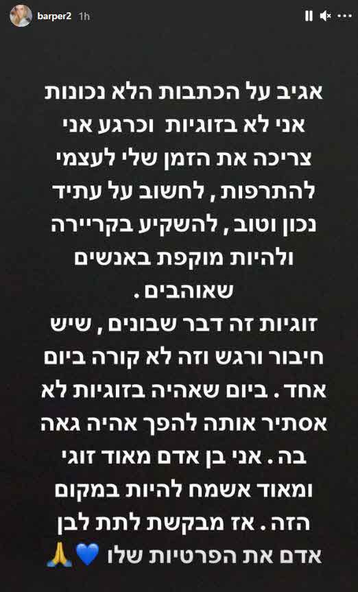 חודשיים עברו מאז הפרידה שסוקרה בכל ערוצי התקשורת בן הזמר בן אל תבורי לבן הקצינה, בר פרץ ונראה שלמרות שהשניים כבר לא יחדיו היא ממשיכה למשוך את סקרנותם של לא מעט אנשים שהחליטו לעקוב אחרי צעדיה של פרץ. אם זה כאשר חשפה שחלתה בסרטן ואם זה לגבי זוגיות חדשה שעלולה לצוץ לה לאחר הקשר עם תבורי ג'וניור – מה שדווח היום בתקשורת ונראה שהיא לא ממש אהבה את הפרסומים הללו.