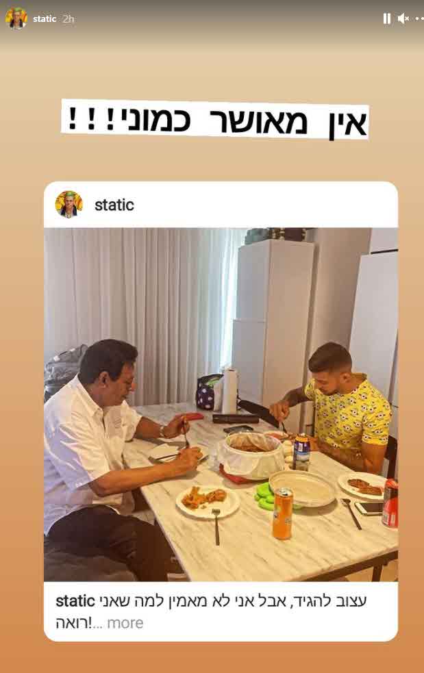 בן זוגו העסקי של בן אל, סטטיק שגם היה תחת מתקפה בראיון של יהודית באומן בתוכנית הצינור בו בין היתר הואשם על ידה כי הוא אחראי בסכסוך בין בן אל לשימי החליט להגיב בסטורי שלו לסולחה שלהם ולגמרי פרגן: