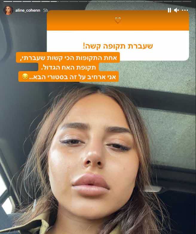 אלין הוסיפה:"כל תגובה על אמא פגעה לי בלב כמו חוץ. שברה אותי לרסיסים. וכבר התחלתי לחשוב עם עצמי.. זה המקצוע שבחרת, וכל הביקורות והתגובות הרעות זה חלק מזה, אבל אם נופלת בצורה כזאת ולוקחת ללב על תגובה של עמוד בדוי עם 0 עוקבים, האם את מספיק חזקה כדי להישאר במקצוע שלך?"