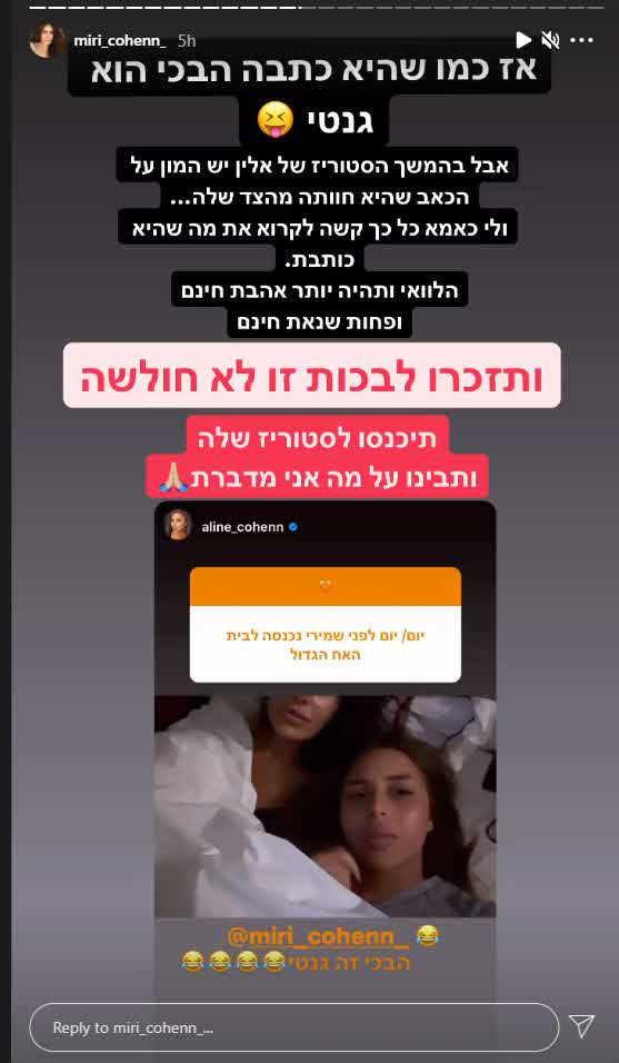 הרבה לפני שמירי כהן טענה לעוקבים שהתוכנית הערוכה בערוץ 13 לא שירתה נאמנה את האני האמיתי שלה כשהייתה בתוך הבית, הטוקבקיסטים ברשת "חגגו" בלשון המעטה על כל צעד ושעל שלה בטרם הודחה. בתה אלין מספקת עכשיו חשיפה לטראומה שחוותה בעקבות המתקפה עליה ברשת וגם איך עברה, מחקה וחסמה כל גולש וגולש שכתב על אמא שלה דברים פוגעניים.