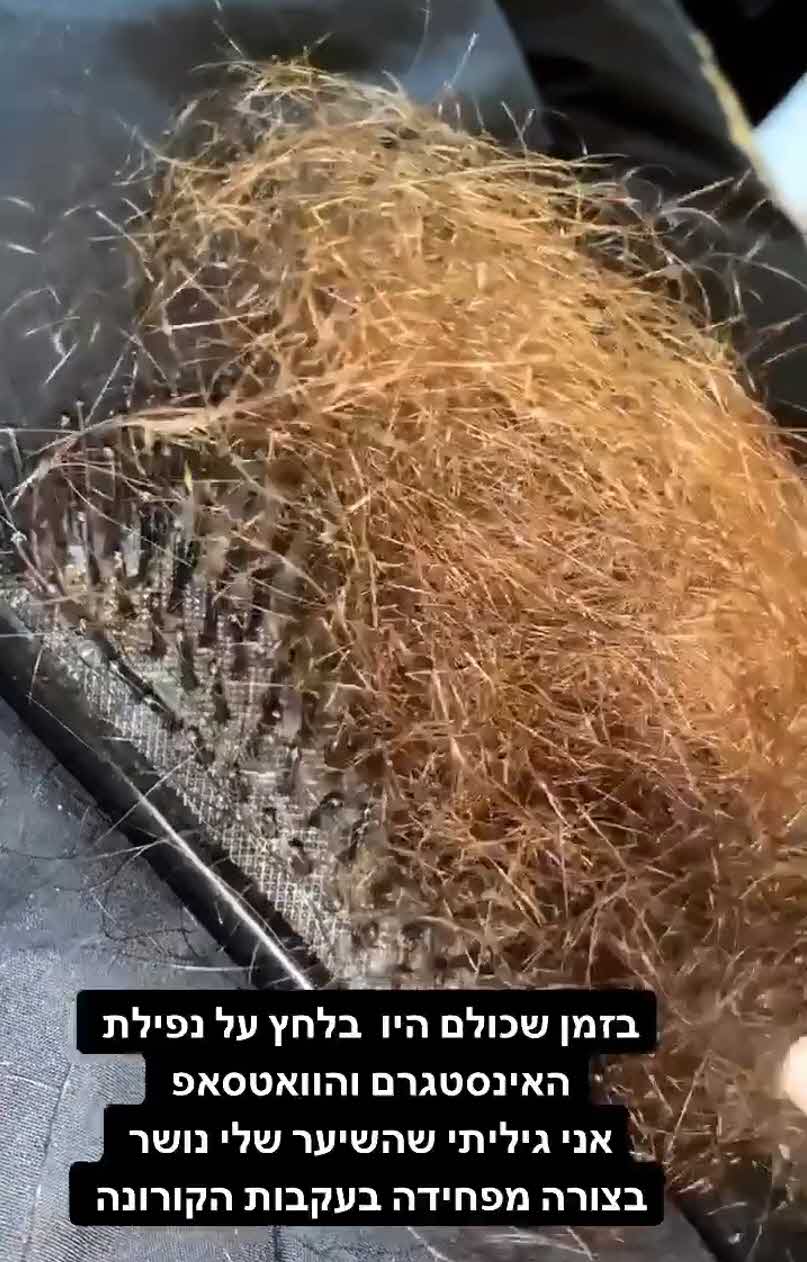 בהמשך מירי הראתה כמה שיער יצא לה בחפיפה אחת:"תחשבו שזה מה שאני מראה לכם. אני לא רוצה להראות לכם מה היה על הרצפה. הרצפה הייתה מלאת שיערות שסירקתי.." והוסיפה:"תראו כמה שיער זה מלחיץ. גם יש לי המון שיער אני יודעת ויש לי רזרבות אבל זה המון, אני יודעת זה המון.. מלחיץ!"