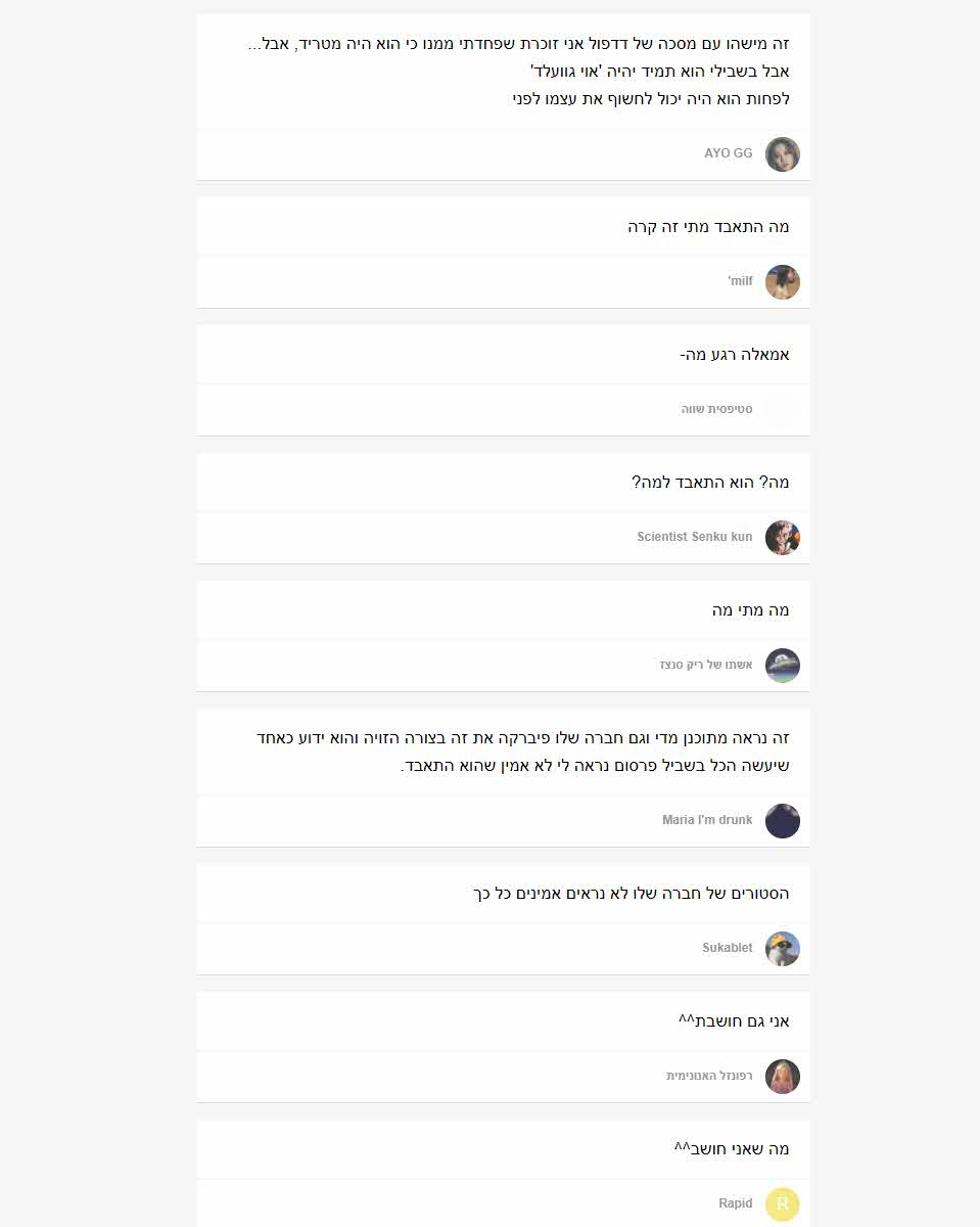 באחד הסטוריז התנצל וכתב:"מתנצל ששמתי את היקרים בחושף, באמת. כאב לי אבל חשוב להבהיר, it's not about you. זה בשביל צדק, זה בשביל שינוי חברתי, זה בשביל שאנשים לא ימותו לבד כי כולם תקועים ברשת ולא טורחים להתסכל ולבדוק אם חבר שלהם בסדר. אני לא הייתי בסדר. הייתי ככה קרוב מהתאבדות, אתם לא מבינים כמה קרוב."
