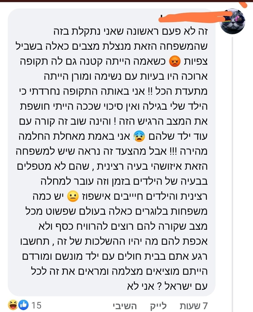 תגובה נוספת שהפכה להיות מובילה בשרשור:"זוג שמכרו את נשמת שלושת ילדיהם לשטן תמורת בית בראשון". גולשת נוספת החליטה לפרוק בדיוק את מה שהיא חושבת בנושא לאחר מעקב דרוך אחרי שיתופי המשפחה: