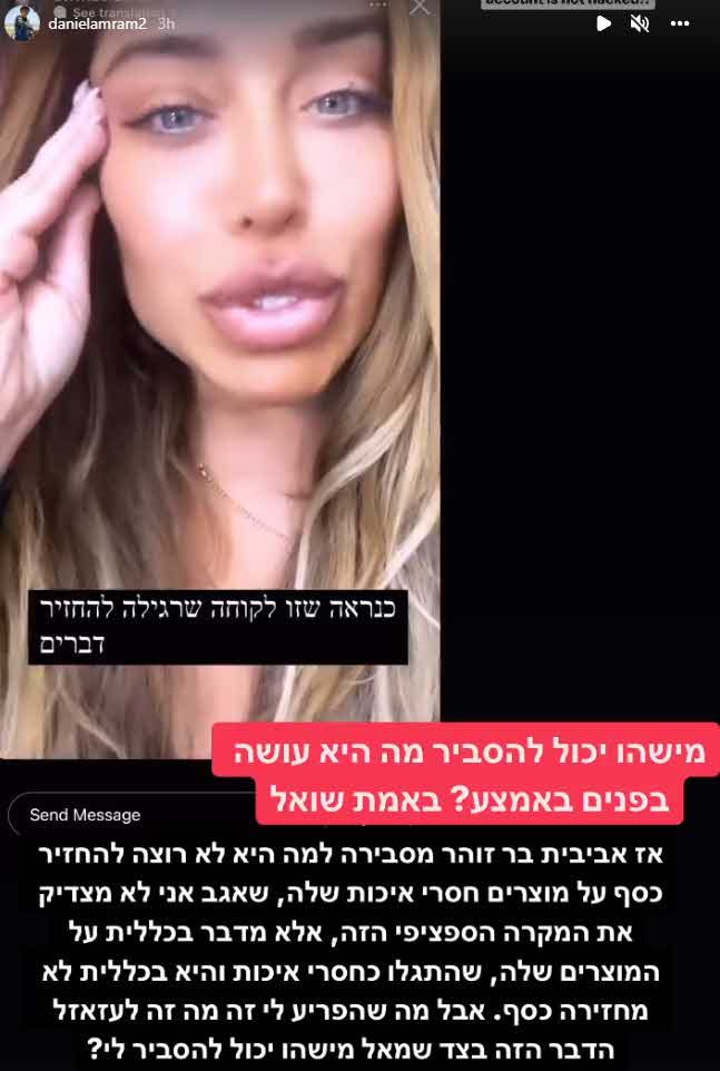אך נראה שזאת הייתה רק יריית הפתיחה בנושא. כוכב הרשת והתחקירן דניאל עמרם החליט לבקר את הסטוריז האלה של בר זוהר וכתב בתגובה:"אז אביבית בר זוהר מסבירה למה היא לא רוצה להחזיר כסף על מוצרים חסרי איכות שלה, שאגב אני לא מצדיק את המקרה הספציפי הזה, אלא מדבר בכללית על המוצרים שלה, שהתגלו כחסרי איכות והיא בכללית לא מחזירה כסף".