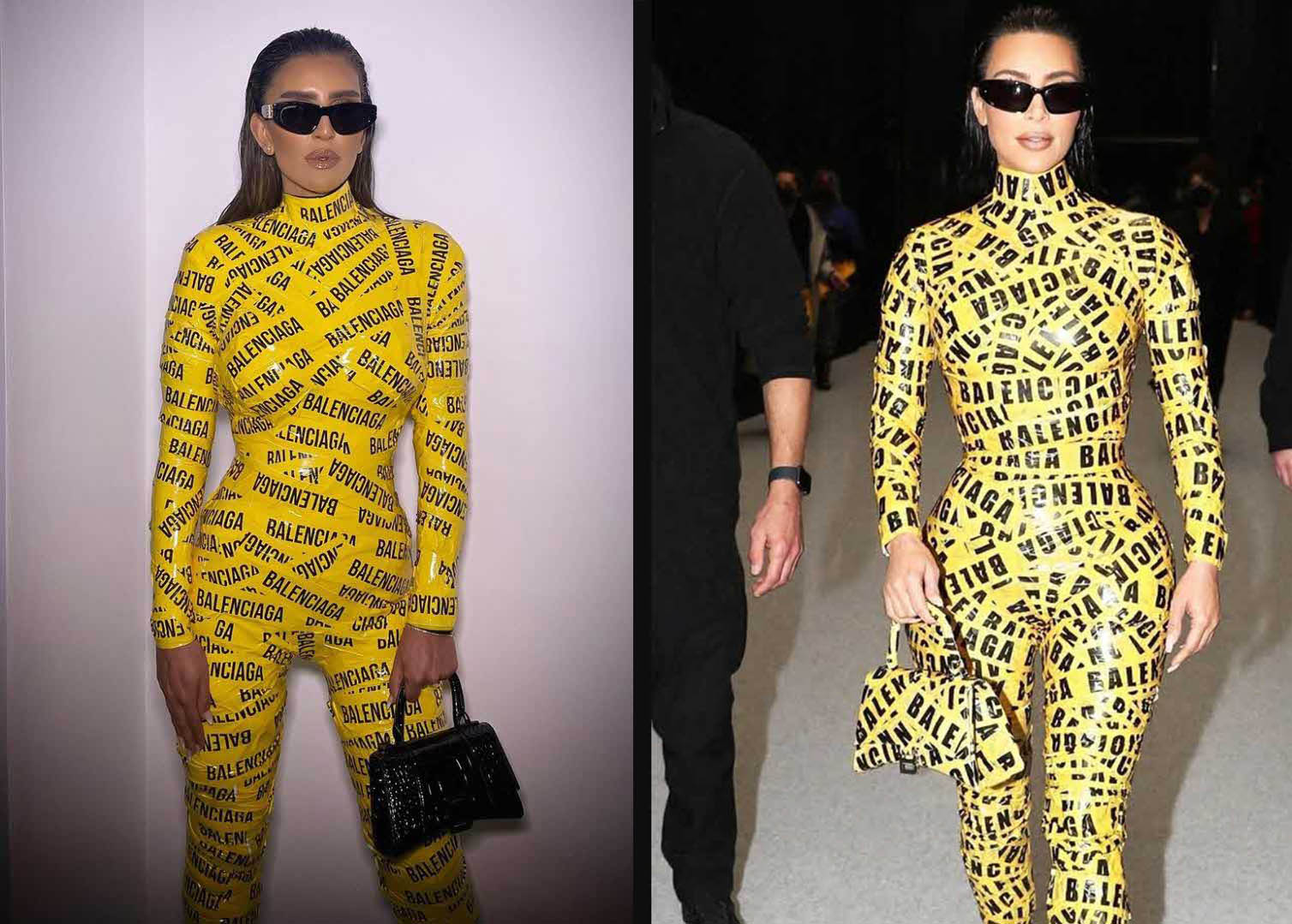 ולאחר שהמקרה הפחות נעים הזה חלף לו, התפנתה הבובלילית לכבוד חג הפורים הקרב ובא והחליטה להיות הראשונה שתתחפש בתחפושת נועזת ומקורית במיוחד. לפני כשבוע, קים קרדשיאן עלתה למסלול עם תלבושת מנקרת עיניים בטרנד ה"לוגומאניה" שכולה עשויה מסרט אזהרה עם לוגו של בית האופנה הצרפתי הנחשק בלנסיאגה – ונחשו מי הלכה בעקבותיה?