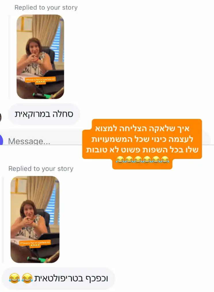 בסטורי ששיתפה שלי עם אמה, נשמעת האם שואלת את בתה: "את יודעת מה זה שלאק?", ושלי משיבה: "מה זה שלאקה ברוסית?" – שם האם פותחת בהסבר: "שלאק זה זבל, דיברנו על זה. שלאק זה חומר שנותר…".