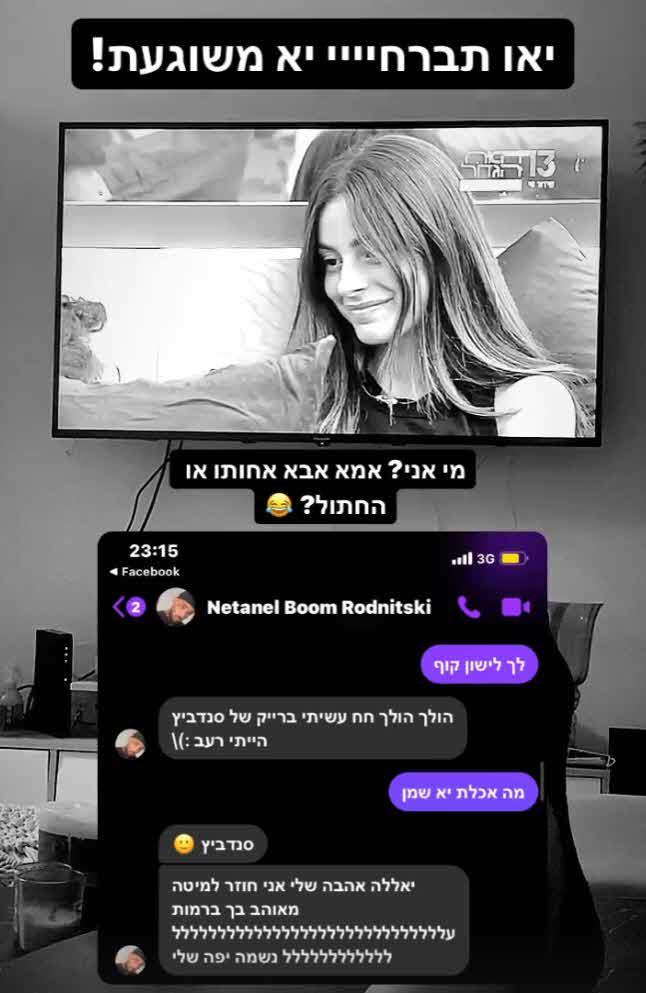 אך זו הייתה רק ההתחלה. עוד העלתה האקסית צילום מסך של התכתבות שלה עם נתנאל כאשר זה כתב לה בעבר:"יאללה אהבה שלי אני חוזר למיטה מאוהב בך ברנות על נשמה יפה שלי". והחליטה להזהיר את דיאן:"יאו תברחייי יא משוגעת!" והוסיפה עקיצה:"מה אני? אמא, אבא, אחותו או החתול?"