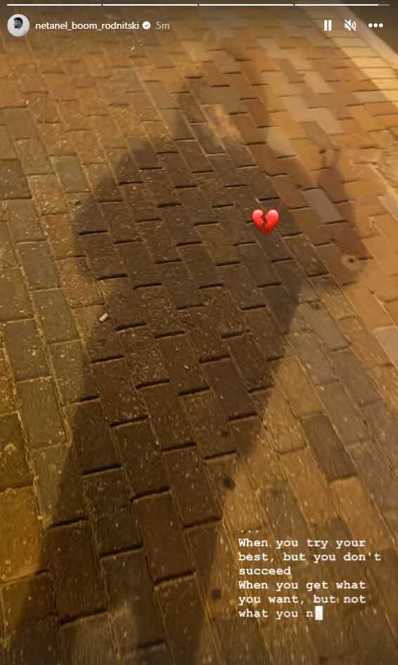 ומנגד היו לא מעט שראו בקשר של השניים התאמה כמו כפפה ליד וממש לא ציפו לפרידה רשמית או הסרת עוקב משותפת ברשתות החברתיות. הראשון להגיב לדבר הפרידה היה נתנאל שהעלה סטורי עם הצל שלו ולב שבור באיזור בית החזה, לצד השיר "Fix you" של קולדפליי.
