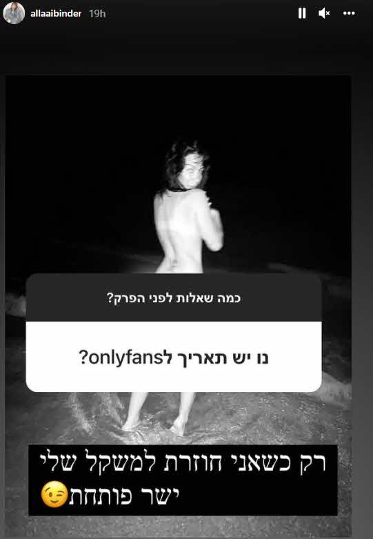 הפלטפורמה הפרובוקטיבית מתחילה לקרוץ לאחרונה ליותר ויותר מפורסמים שמעוניינים לשתף תמונות נועזות. רק לאחרונה נחשפנו כי צמודתו של כוכב "הישרדות VIP" מייקל לואיס – מרי פרגלין היא אחת הכוכבות הנחשקות ברשת. ועכשיו גם כוכבת "הישרדות VIP" נוספת בכבודה ובעצמה, אלה אייבינדר הצהירה בגלוי בסטורי שלה כי תפתח חשבון ברשת וכתבה:"רק כשאני חוזרת למשקל שלי ישר פותחת" בתוספת קריצה.