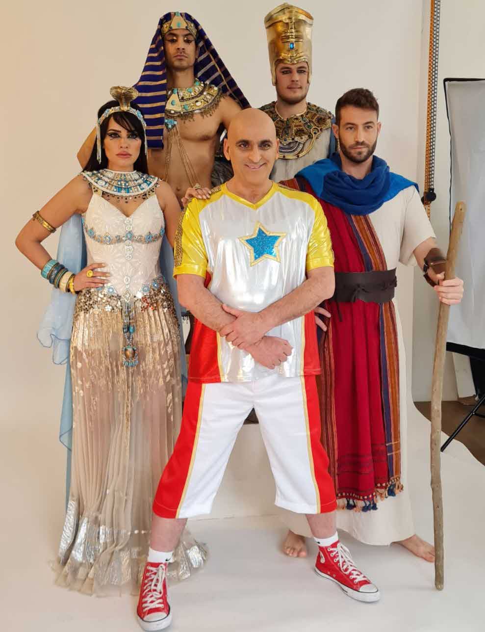 השורדים שנבחרו בקפידה הולכים לגלם את הדמויות האהובות מהסיפורים התנ"כיים: יהונתן יגלם את משה, אודליה את בתיה, גדי פניבילוב את חרטום המכשף. והשחקן רותם יהודה את רעמסס. וזאת כמובן בניצוחו של מי שיהיה הפנים של המופע, יובל שם טוב שיגלם ילד שבעקבות טיול למוזיאון עם הכיתה יוצא למסע מסעיר בזמן שמלמד אותו המון בעיקר על עצמו.