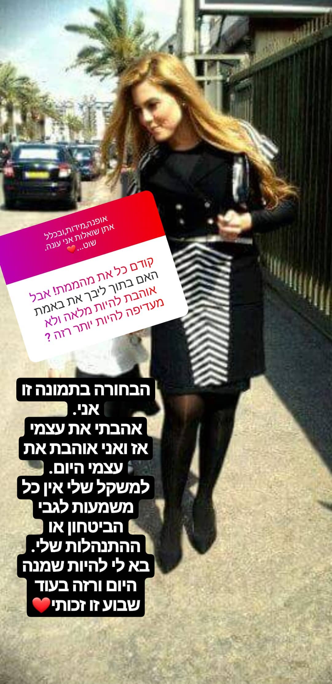 תלבשו את ההרגשה שלכן ובמידה ובא לך לרדת או לעלות במשקל זה שלכן בלבד.
