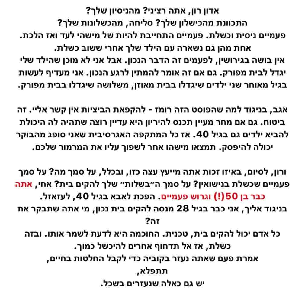 וסיכם:"אחי, אתה כבר בן 50(!) וגרוש פעמיים. הפכת לאבא בגיל 40, לעזעזל."