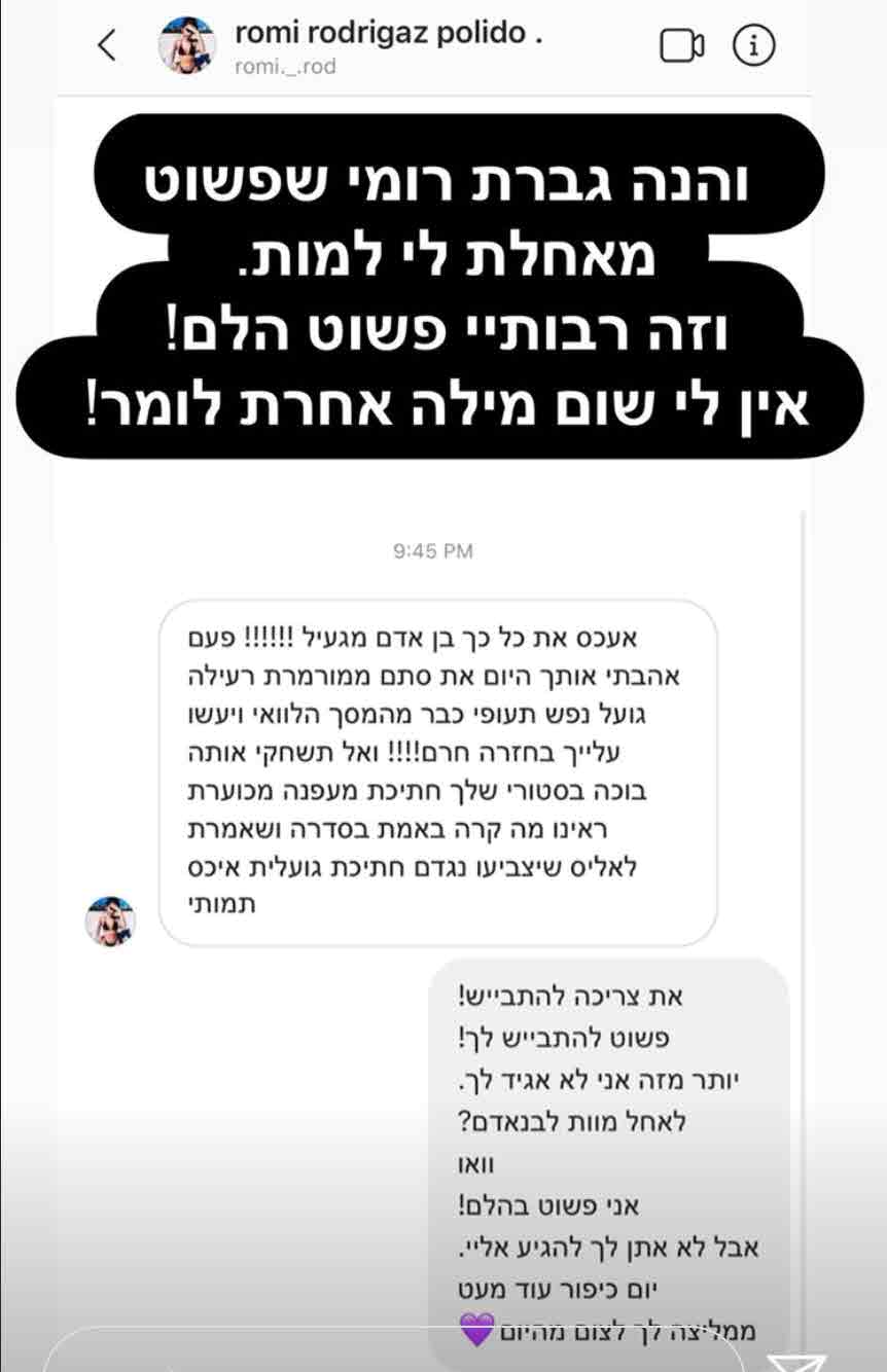 חושבים שמה שעובר על שני מוגזם? מסכימים עם הצד יעל בעניין? בואו להגיב בפוסט הרשמי שלנו באינסטגרם: