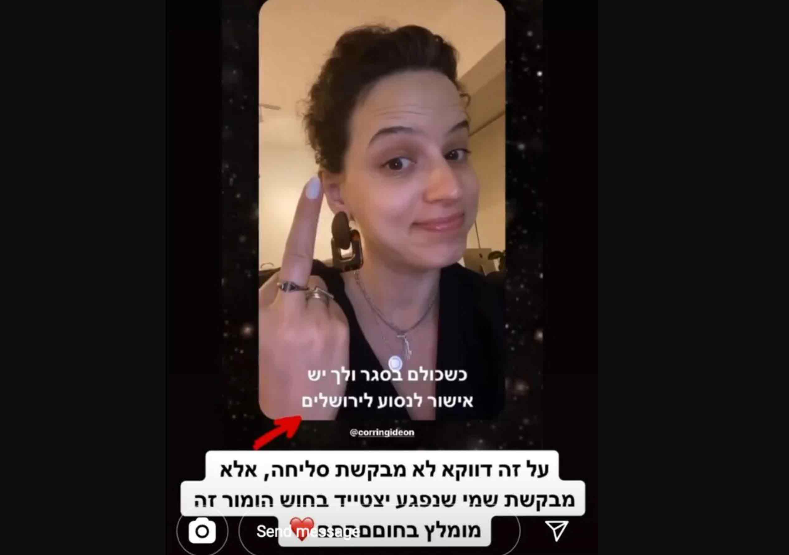 מנחת "האח הגדול" ו-"2025" חשבה שתוכל להשתעשע עם העם הקהל שלה שישב בסגר בזמן שהיא קיבלה אישור לנסוע לירושלים כדי לקחת חלק במשדר סליחות חדשותי מיוחד שהתבצע בכותל וכתבה: "כשכולם בסגר ולך יש אישור לנסוע לירושלים" בעודה מניפה אצבע משולשת.