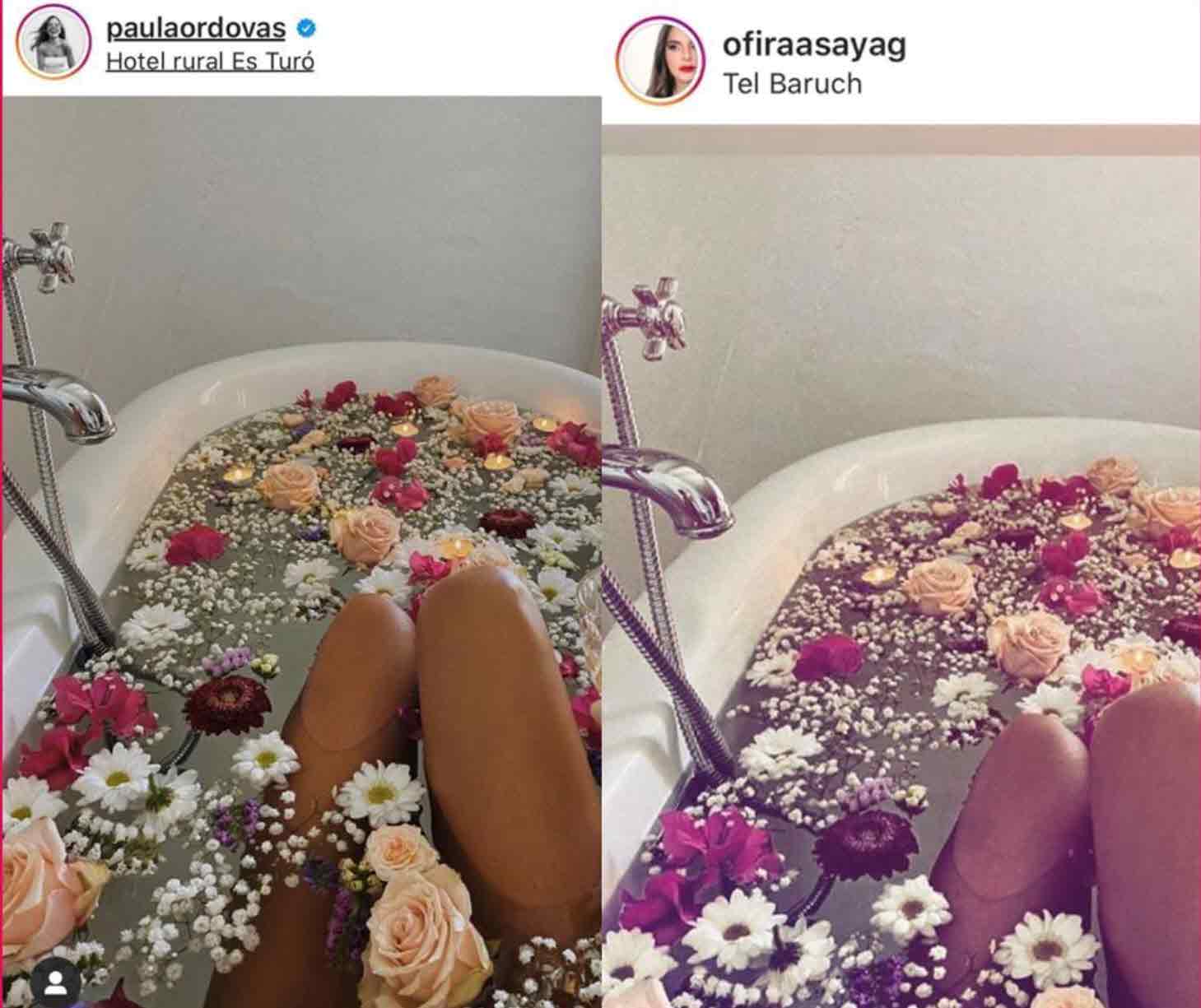מסתבר שהתמונה המקורית הייתה של הבלוגרית הספרדיה פאולה אורדובה שהעלתה תמונה זהה כבר לפני כחודשיים לחצי מיליון עוקביה, את אותה התמונה העלתה אסייג לחשבון האינסטגרם שלה ללא קרדיט ועם מספר שינויים ואפקטים תוך כדי טשטוש חלק מהפרטים כמו הבוהן של פאולה.