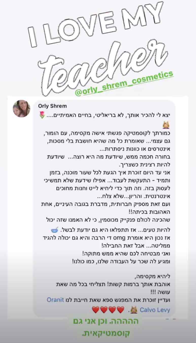 "רגילה לביקורת, רגילה שאני שק האיגרוף של התקשורת ומוכנה עם עור של פיל והרבה הומור. אבל היום, היום עוד גבול נחצה. היום צפיתי בתוכנית גלית ואילנית. צופה מידי פעם, ואפילו התארחתי בתוכנית. קיבלתי כסף כדי להתארח."