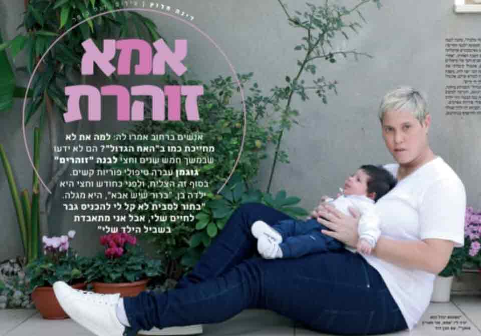 שמו אופיר, גבר בגיל 44 שנכח באותו אירוע יום ההולדת לבנם המשותף :"האבא של הילד שלי הוא בחור מקסים, בן 44 סטרייט, חתמנו על הסכם להורות משותפת, מאז הלידה הוא בא כמעט כל יום וגם תומך כלכלית"