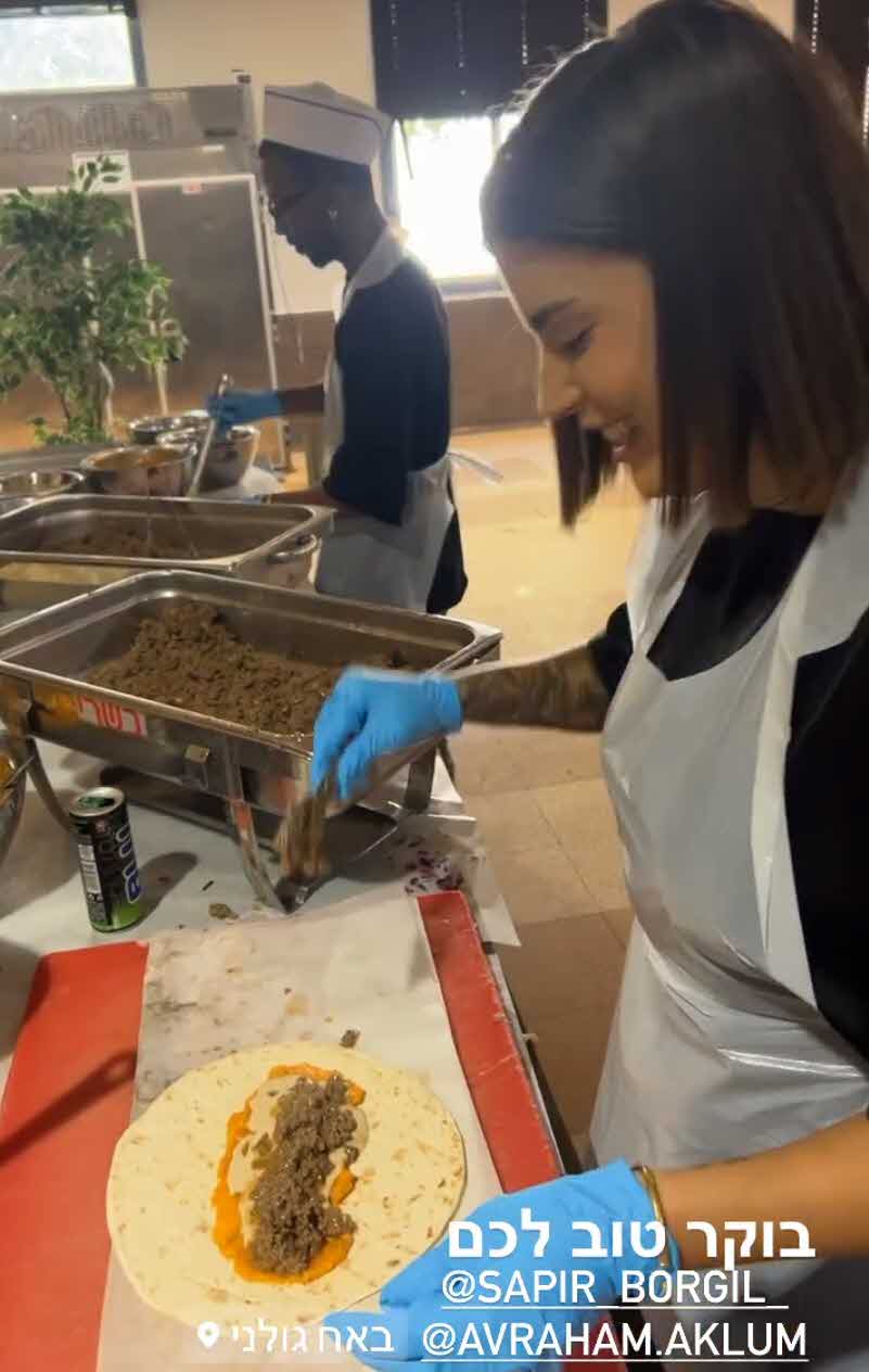 ספיר הוסיפה הסבר לעוקבים: "טוב אז באנו לבסיס של שגיב, לעזור להם קצת בצהריים ובהכנות. אברהם פה בפס של הטורטיות, אנחנו לא יודעים מה הוא עושה.." לאחר מכן ספיר התלוצצה: "מפה אני פותחת לך דוכן!".