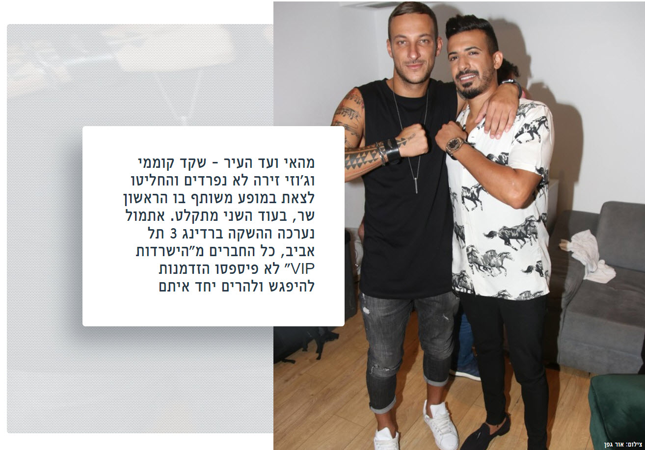 הם החליטו לצאת במופע משותף בו הראשון שר, בעוד השני מתקלט. אתמול נערכה ההשקה ברדינג 3 תל אביב, כל החברים מ"הישרדות VIP" לא פיספסו הזדמנות להיפגש ולהרים יחד איתם.