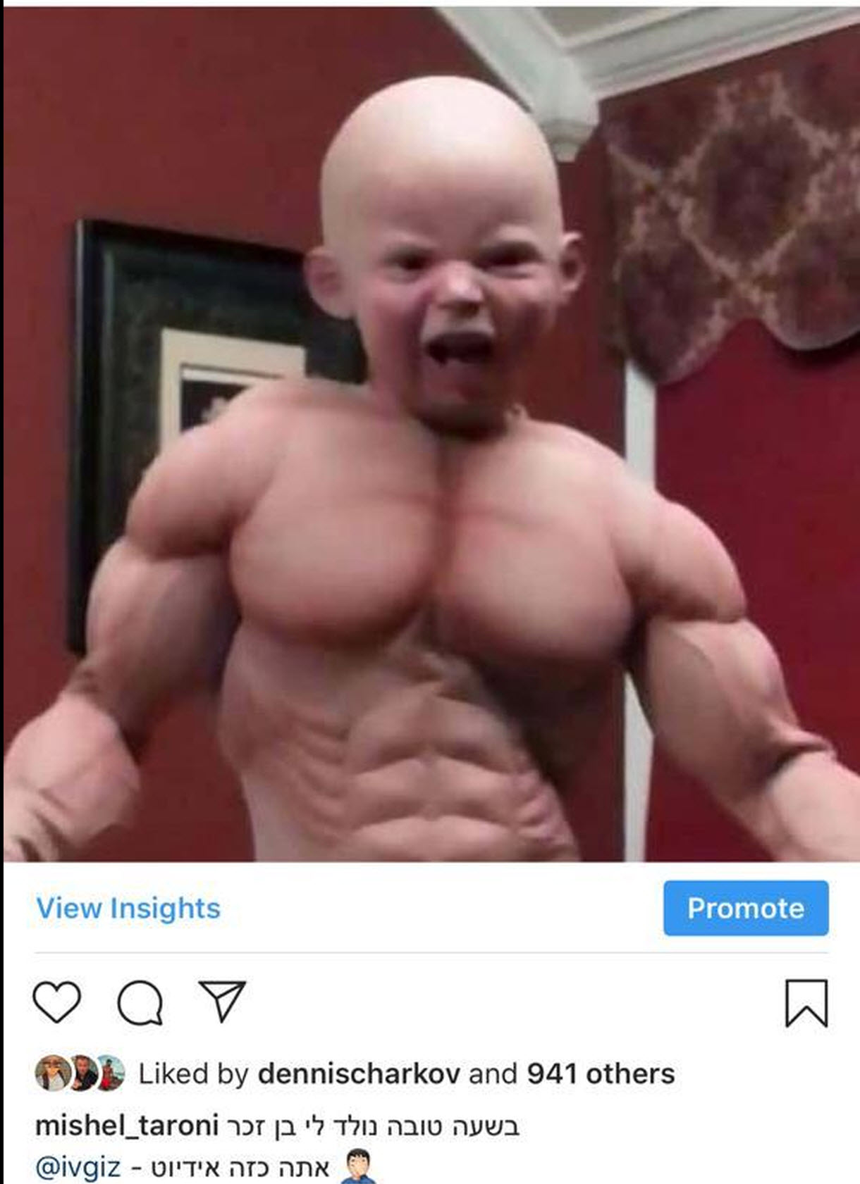 בדיחות בצד.. מישל החליט יותר מאוחר לאזור אומץ ולהעלות תמונה אמיתית עם התינוק שלו
